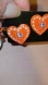 Vtg 80s NFL Denver Broncos football handpainted orange wooden heart earrings