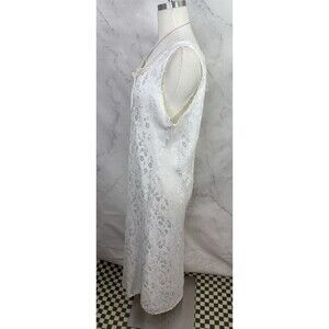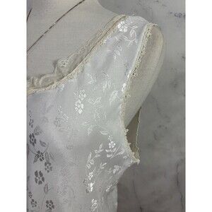 Vtg 80s Nightgown Dress White Satin Floral Lace Bridal Prairie Cottagecore SZ L