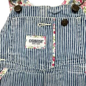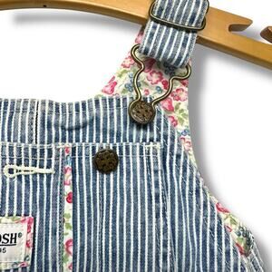 Vtg 80s OSH KOSH B'Gosh Pinafore Jumper Overalls Dress Cotton Striped Floral Piping 18 mos