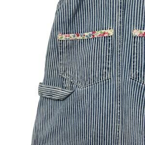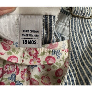 Vtg 80s OSH KOSH BGosh Jumper Overalls Dress Cotton Striped Floral Piping 18 mo