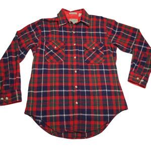 Vtg 80's Outdoor Exchange Button Down Shirt Medium Red Plaid Flannel Long Sleeve