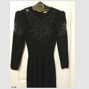Vintage 1980's Pat Sandler for Wellmore Black Knit L/S Cocktail Dress Stretch Size S? No size tag. See measurements