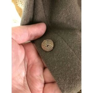 This is a 80s vintage brown couture designer blazer by Peggy Jennings in a size 8. Features include super soft fabric, knitted, has shoulder pads, gold tone buttons, unlined, pockets and stretch. Item is in very good preowned condition. The previous owner has cat. Bust measures approximately 44", waist 42", length 33".