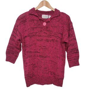 Vtg 80s Pink Collared Sweater 3/4 Sleeve