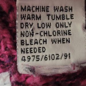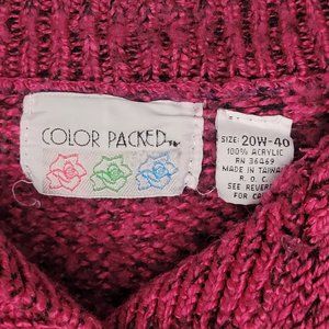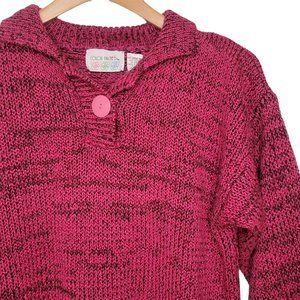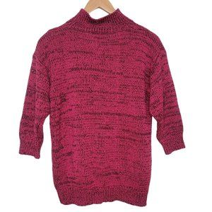 1980's Vintage Color Packed Pullover Knit Sweater with 3/4 sleeves, and quarter-button collared neckline. Dark pink/magenta acrylic, machine washable.
