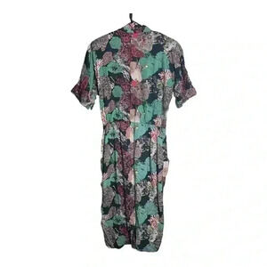 Vtg 80s Positive influence Unique Pattern Pockets accordion pleat dress Sz 3/4