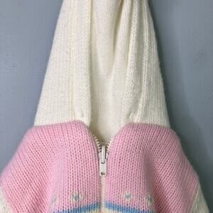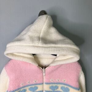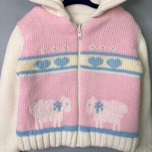 Vtg 80s Reversible Toddler Hooded Full Zip Sweater Jacket Hearts Lambs 12-18 mos