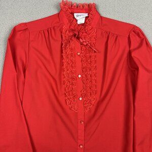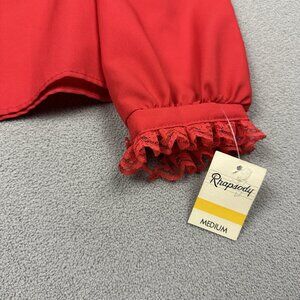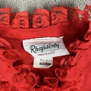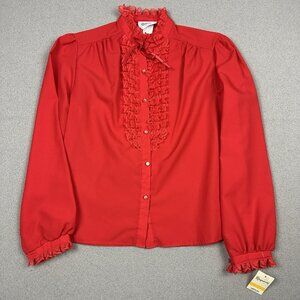 Vtg 80s Rhapsody Ruffled Blouse Button Up Red Long Sleeve M Secretary Nwt USA