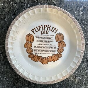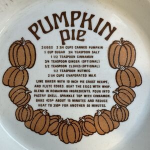 Vtg 80s Royal China Pumpkin Pie Recipe Ceramic Dish 11" USA Country Harvest Bake