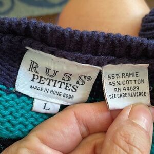 Vtg 80s Russ Petites ramie/cotton multi colored thick knit sleeveless sweater