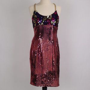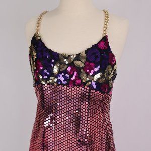 Vintage 1980's/1990's Multi-colored Sequin Dress with Gold Chain Straps