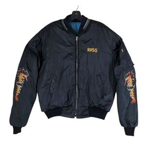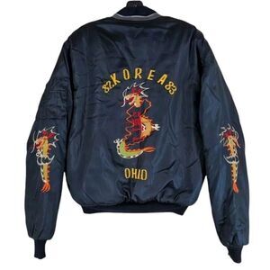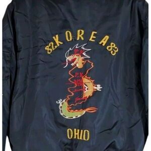 Vtg 80s Sukajan Korea Satin Bomber Jacket Embroidered Dragon Men L USAF Military