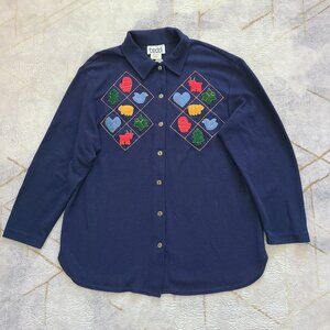 Vtg 80s Teddi Folk Art Appliqué Graphic Cardigan Women’s L Holiday Reindeer