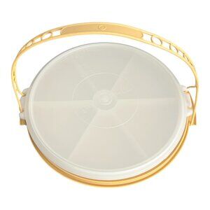 This vintage Tupperware Party Susan set from the 80s is perfect for serving veggies and snacks. With four divided sections, it's both functional and nostalgic. Made in the USA, it's a durable addition to your kitchen. Item 224-9, 12" Dia. In Good Condition See Photos Sold as Pictured