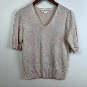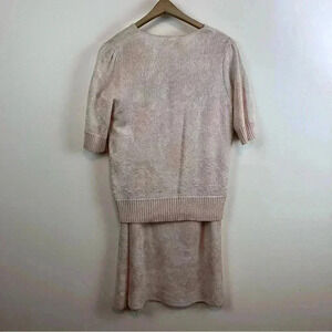 Vtg 80s Vivanti 12 Sweater Set Pink Knit Puff Sleeve Top Pencil Skirt USA Union