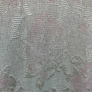 VTG skirt and sweater set. USA Union made. Pink knit with gold shiny thread. Floral pattern. Short puff sleeves. There is some staining/discoloration. On the top I’m actually not sure if it’s just part of the pattern. On the skirt it is definitely staining. The skirt has an elastic waist that does not have much stretch-it stretches out some, but it doesn't really snap back. This means that the waist measurement may stretch about a 1/2 inch but will not snap back to much less. Good vintage condition.