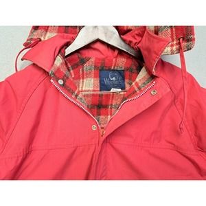 Vtg 80s WOOLRICH Wool Plaid Lined Red RAIN JACKET Windbreaker Coat Sz L