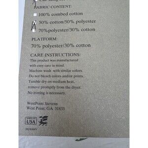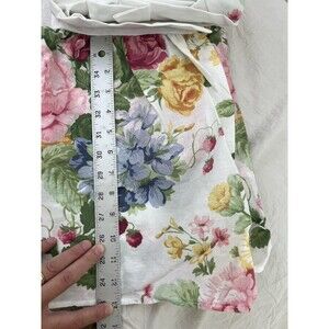 This vintage 80s Westpoint Stevens Western King Size Bed Skirt features a colorful floral pattern with a 13" drop length. Made in the USA, it is crafted from a blend of polyester and cotton materials. Perfect for adding a touch of Steven character to your bedroom decor.