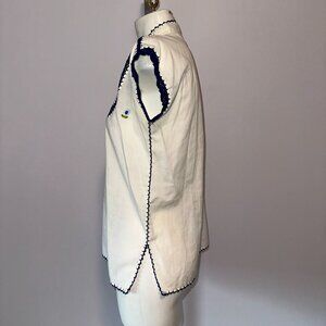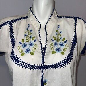 Vtg 80s White Embroidered Crochet Lightweight Cotton Blouse Floral Thailand 42
