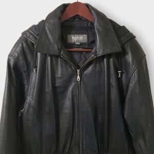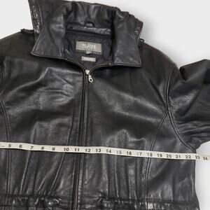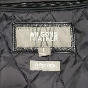 Vtg 80s Wilsons Leather Thinsulate Insulated Quilt Lined Hooded Coat Black Sz L