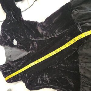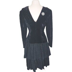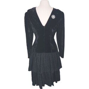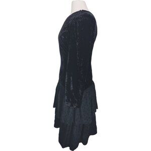 Vtg 80s Witchcore Black Velvet Dress 6 Drop Waist Ruffle Skirt Witchy Grunge