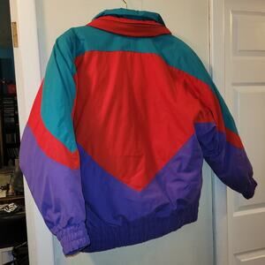 Vintage 80s 90s Vibrant Colored Womens London Fog Ski Jacket Coat Size M Color Block Red Blue Purple