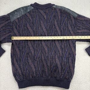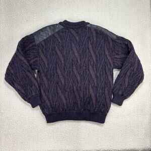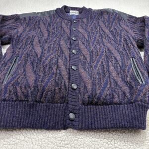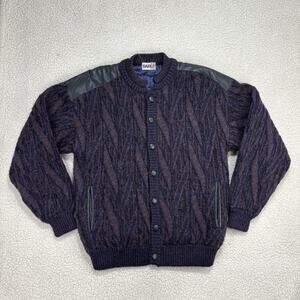 Vtg 80s Wool Knit Cardigan w/ Leather Shoulders Mens Size 50 Carlo Club Grandpa