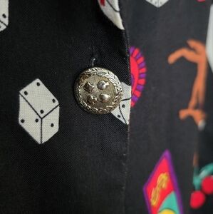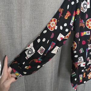 Vtg 80s Xtrovert All Over Casino Gambling Print Collared Blouse Long Slv Size 14