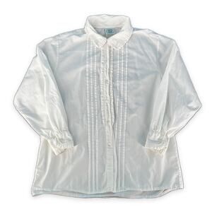 Vtg 80s/90s Laura Ashley Ruffle Front Button Down Shirt White sz 10