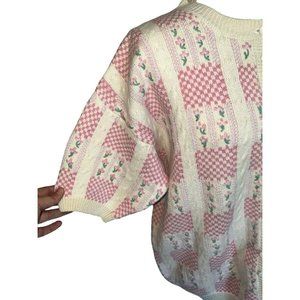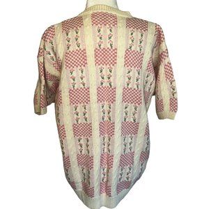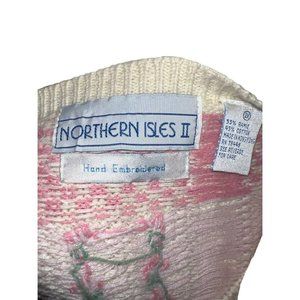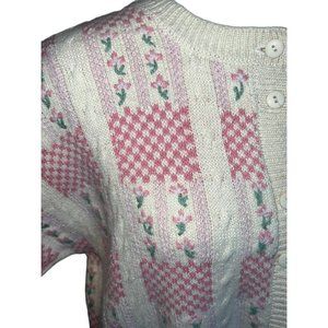 Vtg 80s/90s White Northern Isles II Pink Floral Button Front Cardigan Size L