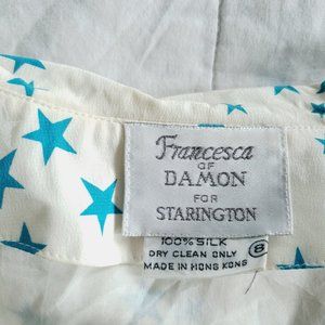 Vtg 80s/90s Womens 8 Star Pattern Silk Blouse Long Sleeve Collared Layered.