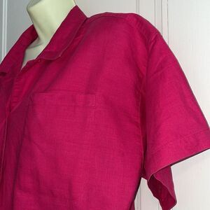 Vintage late 80s/early 90s Workshop Fenn Wright & Manson fuchsia pink short sleeve linen/cotton shirt