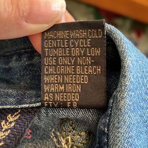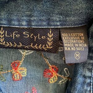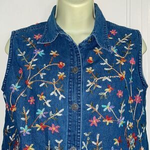 Vtg 80s/90s Life Style blue denim cotton sleeveless floral embroidered shirt