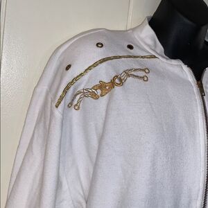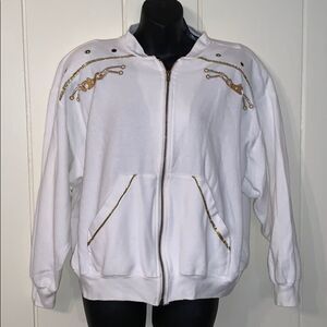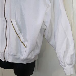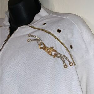 Vintage late 80s/early 90s Barbara Gerwit white knit cotton sweater jacket Zips up front with 2 front pockets