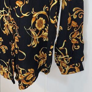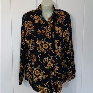 Vintage 80s or early 90s Connections black & gold rayon tunic blouse