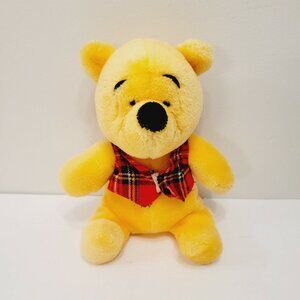 Vtg 9" Winnie The Pooh Plush with Red Plaid Vest Stuffed Toy