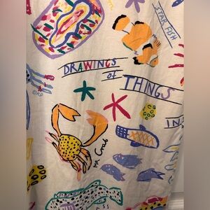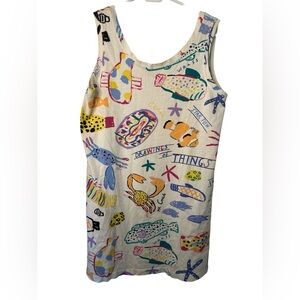 Vtg 90’ KEN DONE AUSTRALIA Art Tank Dress Drawing Beach. 19 pit to pit.