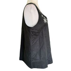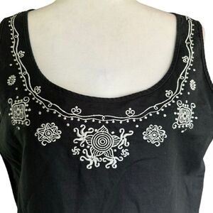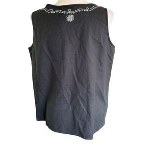 Vtg 90s A Line Anne Klein Black Linen Embroidered Sleeveless Top Sz Large