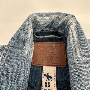 Vtg 90s Abercrombie & Fitch Light Wash Distressed Denim Trucker Vest XS.