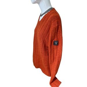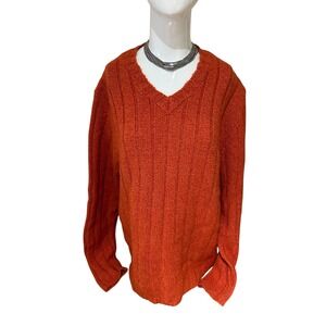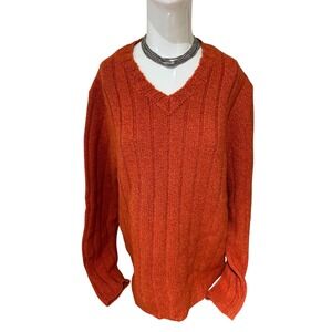 Vtg 90s Abercrombie & Fitch Rust Burnt Orange Ribbed V-Neck Pullover Sweater XL