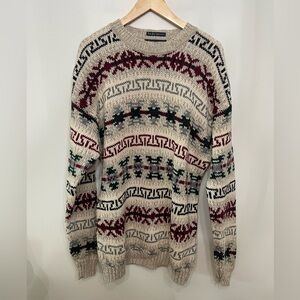 Vintage 90s Abercrombie and Fitch The Big Sweater chunky knit pullover in beige, red, navy and green colorway. Fun geometric pattern and a nice weight. Marked size men’s large. In excellent vintage condition, no flaws. Smoke free home.