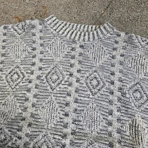 vtg 90s abstract diamond geometric all over pattern heavyweight knit Fair Isle crewneck sweater