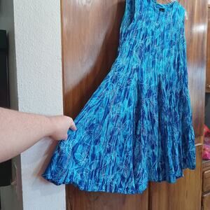 Vtg 90s All That Jazz Womens Medium Floral Rayon Sleeveless Flare Crinkle Dress