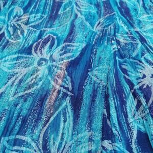 This vintage 90s All That Jazz women's medium floral rayon sleeveless flare crinkle dress is a stylish and bohemian piece perfect for a casual occasion. The blue midi dress features a flattering flare design and is made from comfortable rayon material. With its original 1990s style and Indian craftsmanship, this dress is a unique addition to any wardrobe, offering a retro look that is both timeless and on-trend.