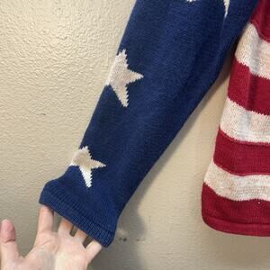 Vtg 90s Americana Patriotic American Flag USA Ramie Cotton Knit Sweater Jacket S