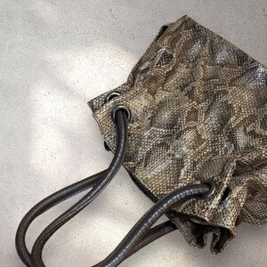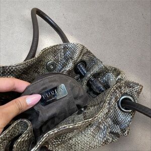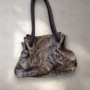 Vtg 90s Authentic Furla Slouchy Brown Python-Embossed Genuine Leather Tote