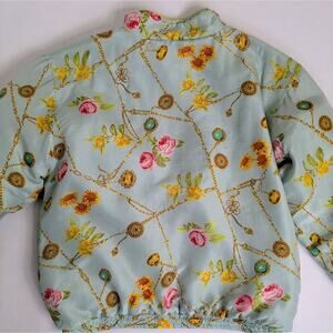 Vtg 90s Avon Style Floral Chain Print Silk Track Jacket Windbreaker Pastel Retro