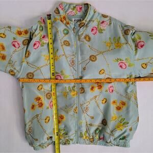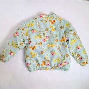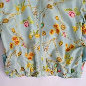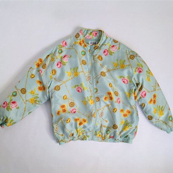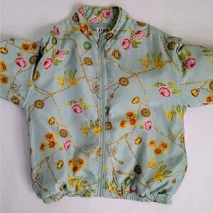 Vtg 90s Avon Style Floral Chain Print Silk Track Jacket Windbreaker Pastel Retro