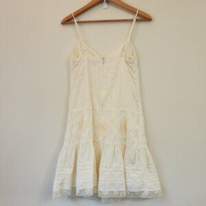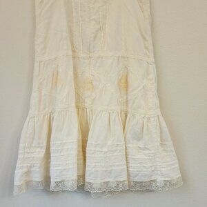 Vtg 90s Baby Doll Mini Tank Dress Lace Pleats Embroidered Women P/S Y2K Wimsy