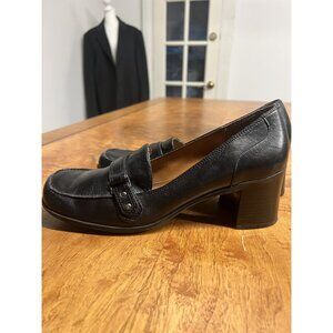 Vtg 90s Bandalino 8.5 M Black Leather Shoes Block Heel Career Old Money Chunky